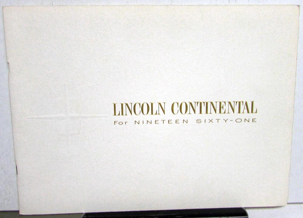 1961 Lincoln Continental Sales Brochure. Lincoln Continental for Nineteen Sixty-One. Classic Beauty in a Smart New Size. Lincoln Continental for 1961 - America's first ideally-sized fine car. Highlights the exterior and interior of the Lincoln Continental Four-Door Sedan and Lincoln Continental Four-Door Convertible, as well as, standard and optional equipment. Also covers some of the testing that goes into making them reliable. Last page inside brochure cover displays colors and specifications. Good condition with minor wear and discoloration [see photos].