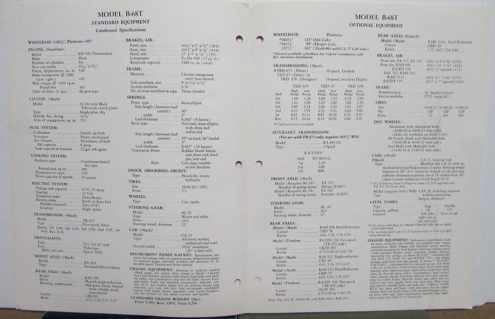 This original sales brochure is in excellent condition and highlights the features of the Mack model B-68T such as the standard equipment, optional equipment, dimensions, and more. This piece would make a great addition to any collection!