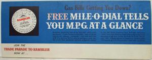 Original, 1962 AMC Trade Parade To Rambler Classic, Ambassador, & American models, color, sales brochure that opens to a larger two-sided, poster-style brochure. This was a circus promotional mailer. Condensed comparisons to Chevrolet and Ford. Very good condition.