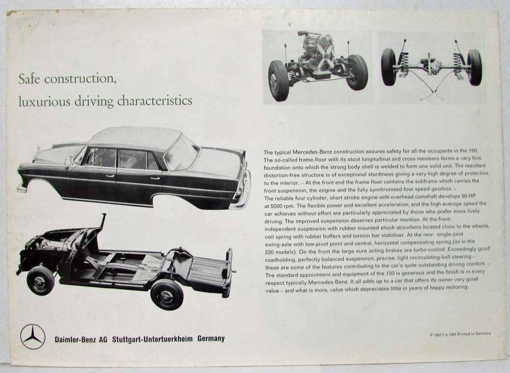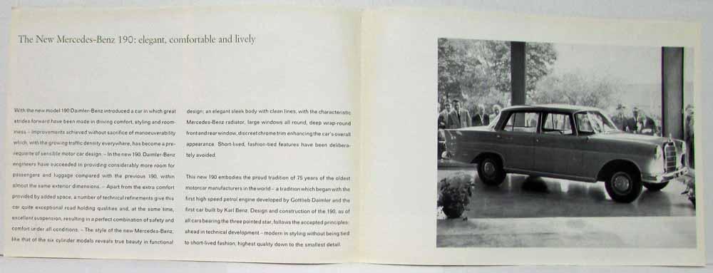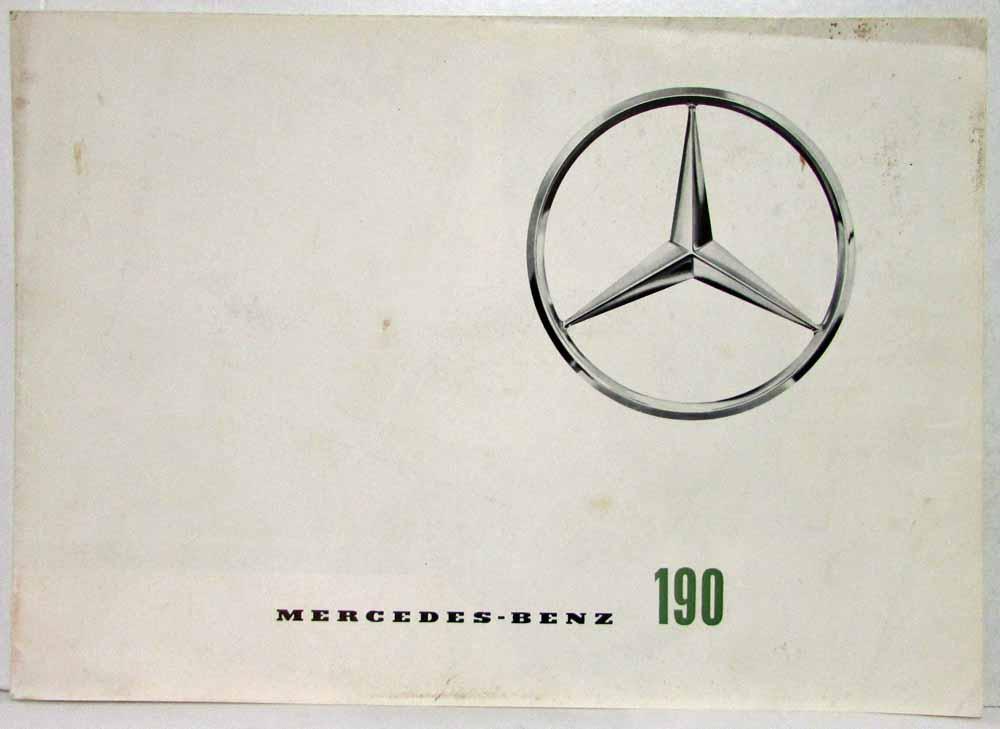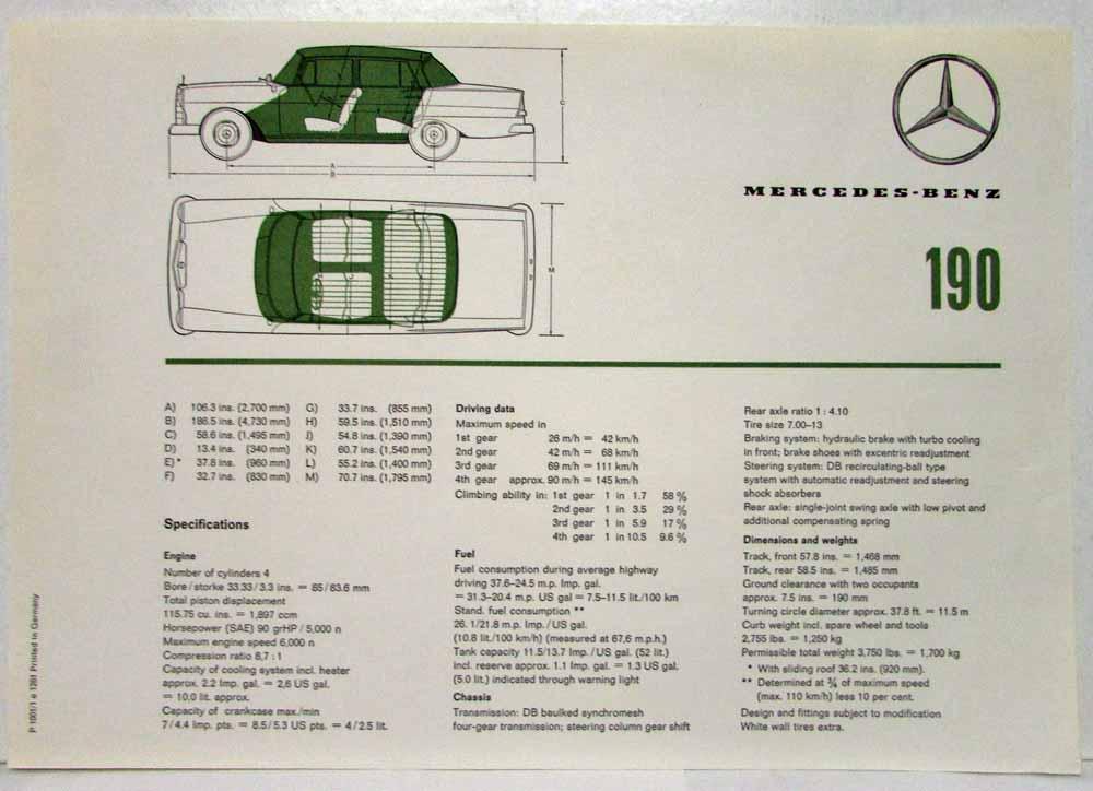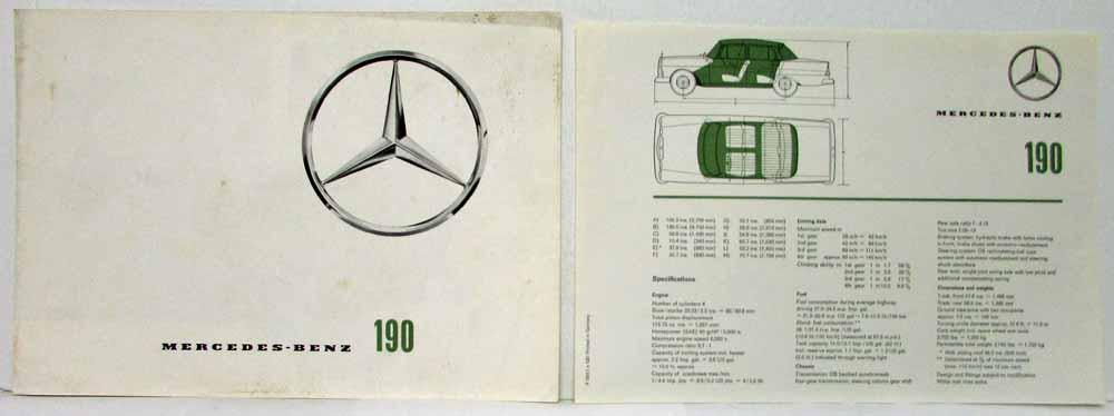 1962 Mercedes-Benz 190 Sales Folder with Spec Sheet. Spec sheet is black and white with green-tone accents. Condition: Some soiling/yellowing on folder. See pics.
