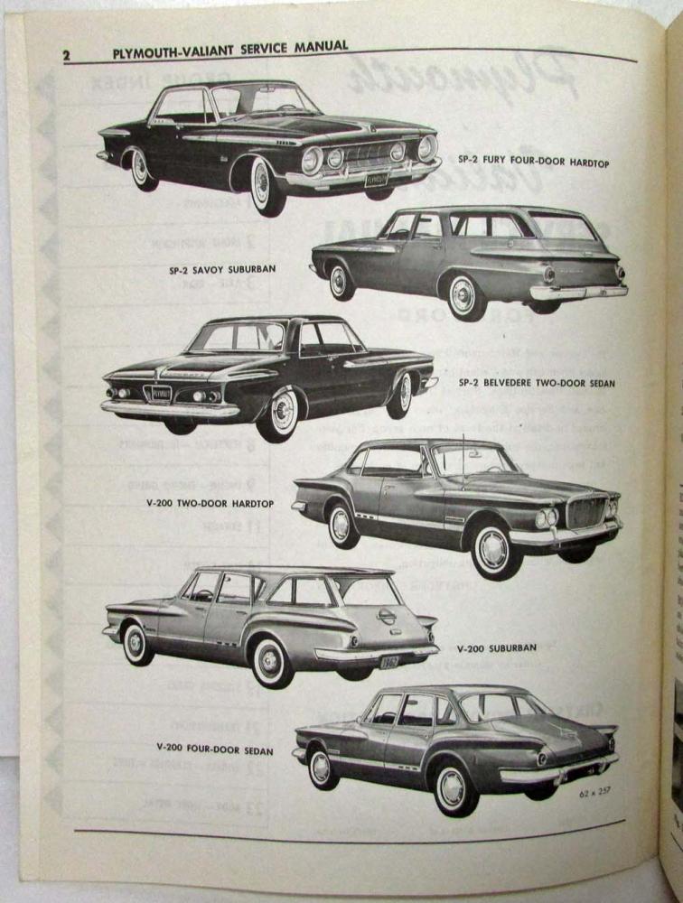 Plymouth: Savoy, Belvedere, Fury, Valiant V-100, V-200, SS-200.