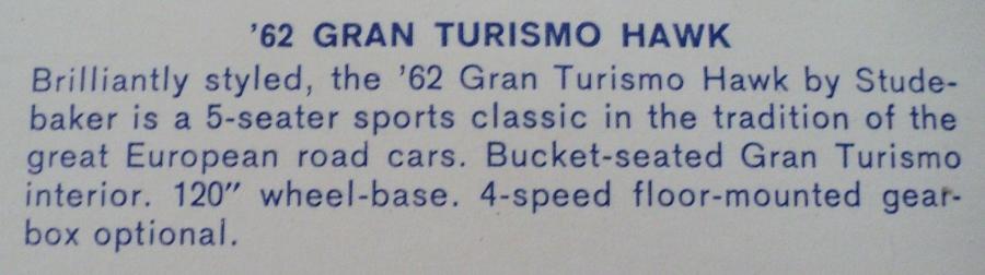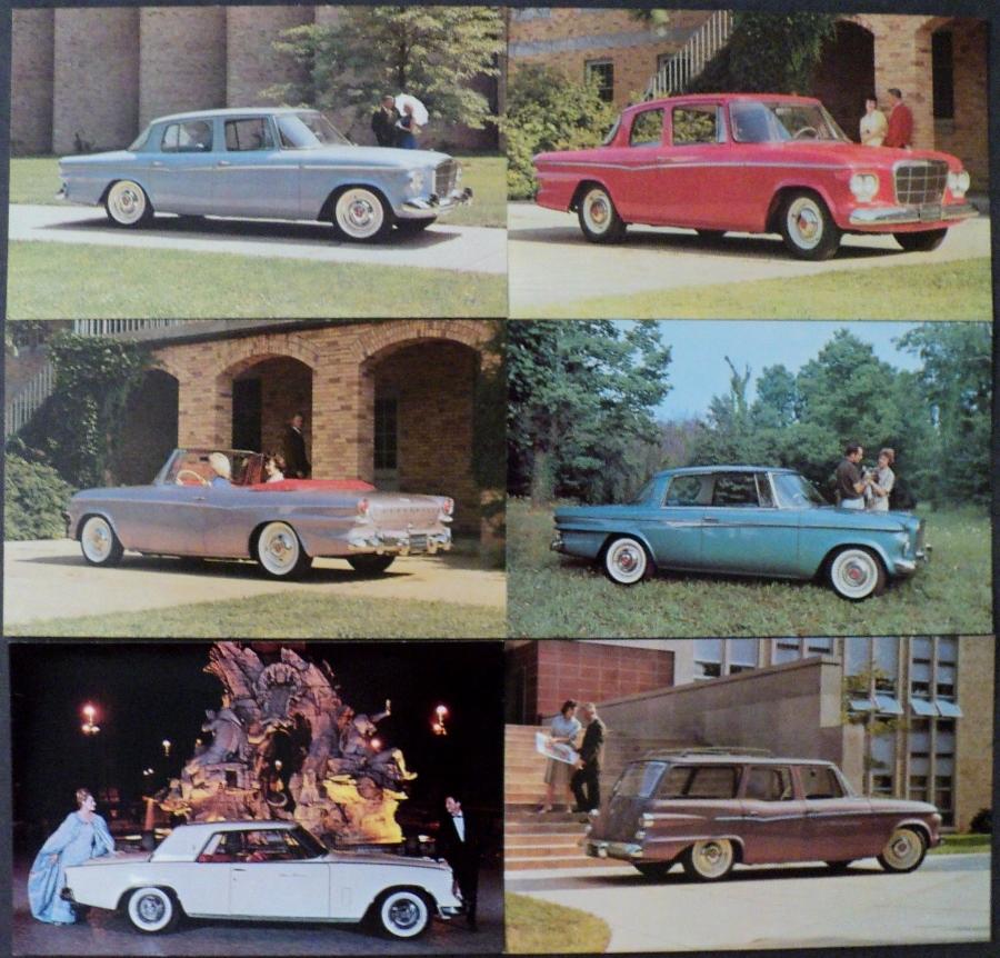 New Old Stock Original Studebaker post cards featuring the 1962 models. Set of 6 for one money. Models are: Gran Turismo Hawk, Daytona Hardtop, and Lark: Cruiser, Convertible, Station Wagon, & 2-door Sedan. Also picture of sample of one card back with car description. What a deal!