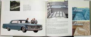 Original, 1963 Chrysler Imperial (Custom, 2-Door, Crown, Crown Convertible, Crown 2-Door, LeBaron), color, prestige, over-sized NICE sales brochure. Raised embossed cover on textured cardstock. Very clean and excellent condition. Read about luxury styling, features, accessories, options, specifications, etc.