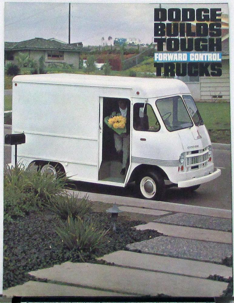 Original Dodge Forward Control Truck Panel P Series 100 200 300 and 400, color sales folder. Contains diagram of chasis, engines, dimensions, mechanical features, driving control advantages, and photos. Catalog 81-305-3033 9/62. Very good condition.