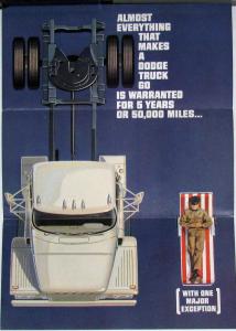 Original sales folder/MAILER printed on two sides of one sheet of paper with multiple folds. This 1963 folder is promoting the five-year warranty plan for Dodge trucks. Dtd 1/63.
