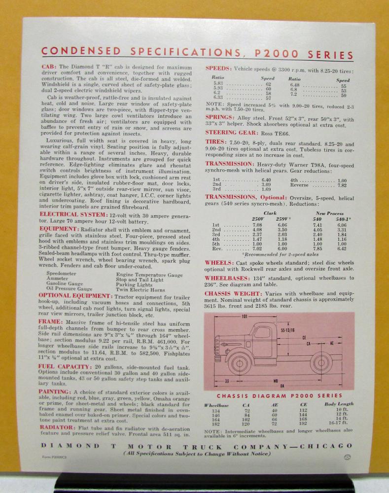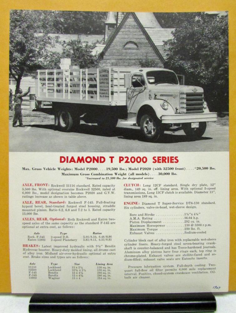 1964 Diamond T Truck P2000 Series Specification Sheet. Models included are P2000 and P2020.