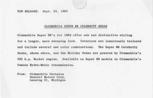 1964 Oldsmobile Super 88 Celebrity Sedan Press Photo and Press Release.