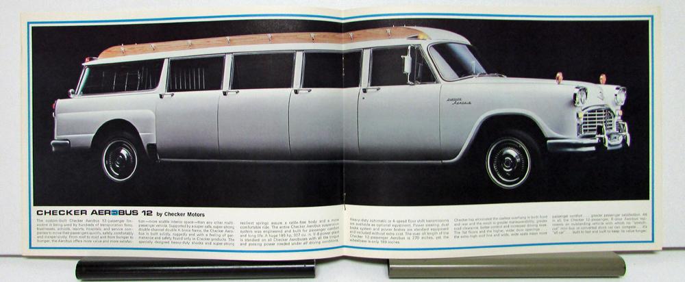 1965-1968 Checker Areobus Limousine Sales Brochure. The front page has a nice picture of the Aerobus..The inside pages show various pictures/illustrations of the Limousine along with picture/illustrations/information on its various features.