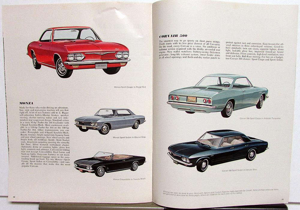 1965 Chevrolet Chevelle Corvair Chevy II Corvette The Beautiful Shapes for '65 ORIGINAL color sales brochure. Color pictures throughout with descriptions for each model and power teams available for each model, as well as brief description of optional features/accessories per model. Measures 8.5 x 11, 20 pages, copyright 1964, Roto in U.S.A., no form no. Good condition with minor wear and discoloration [see photos]. The front cover has a Dealer Stamp.