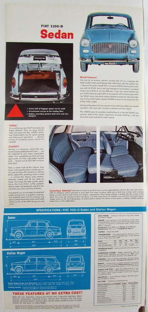 1965 Fiat 1100D Sedan and Station Wagon Sales Folder. Original.
