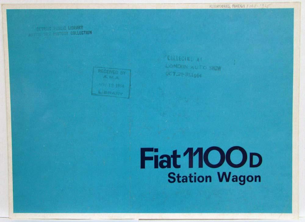 1965 Fiat 1100D Station Wagon Sales Folder. Original. From 1964 London Auto Show.