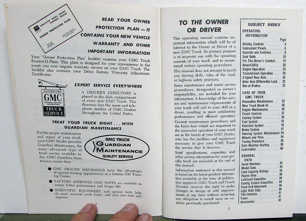 Original 1965 GMC Toro-Flow Diesel Powered Trucks Owners Manual. This Manual has Care and Operation Instructions for the 3500-5000 Models. Good condition for its age with minor wear, soiling and blemishing [see photos]. It has Library Stamps on cover and first page.