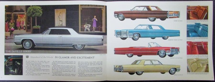 1966 Cadillac original sales brochure with color photos and illustrations of the Fleetwood, de Ville, and Calais Series automobiles. Appointments and conveniences described. Body colors shown. Options. Includes specifications. This is the smaller version brochure. Very good condition. No form no.