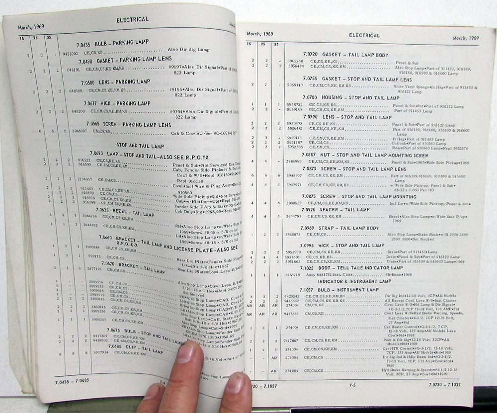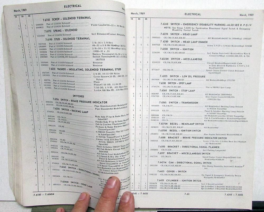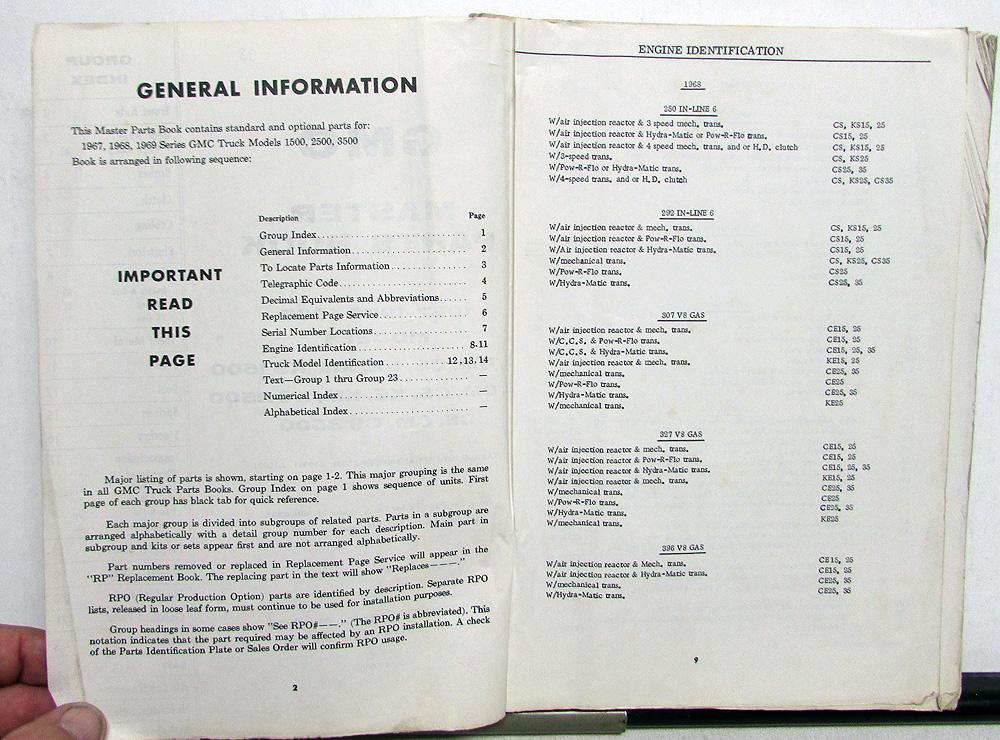 This master parts book contains standard and optional parts for: 1967-1969 Series GMC Truck Models 1500, 2500, 3500.