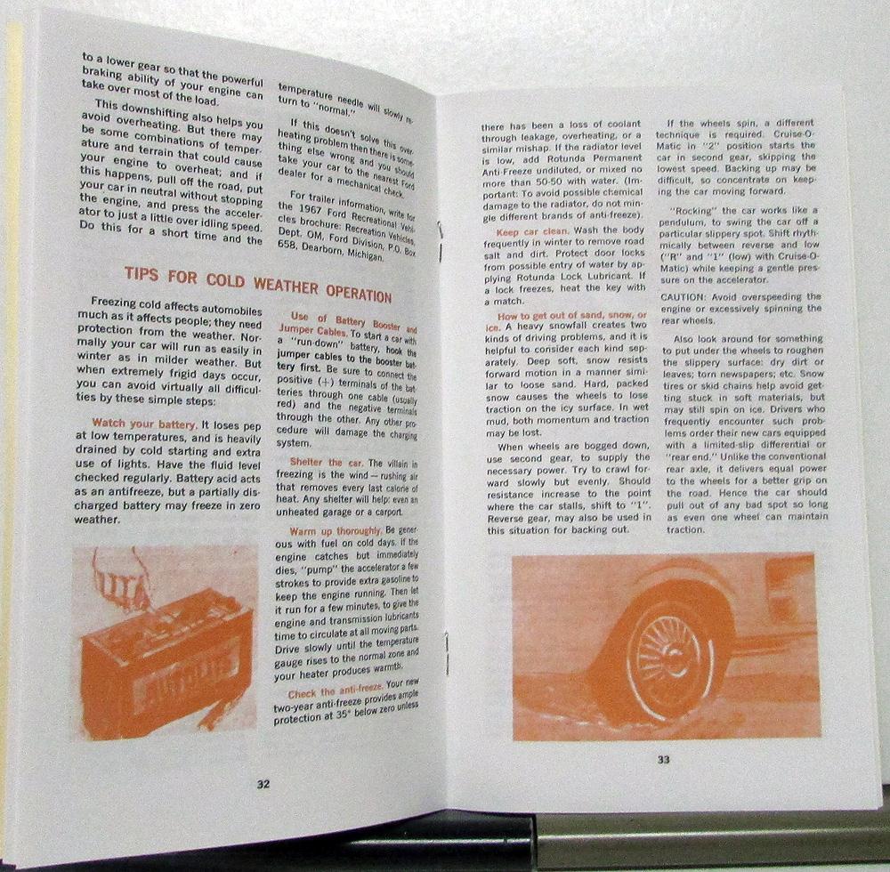Reprint, 1967 Ford Mustang owner's manual, which provides information for operation and care of the vehicle. Very good condition.