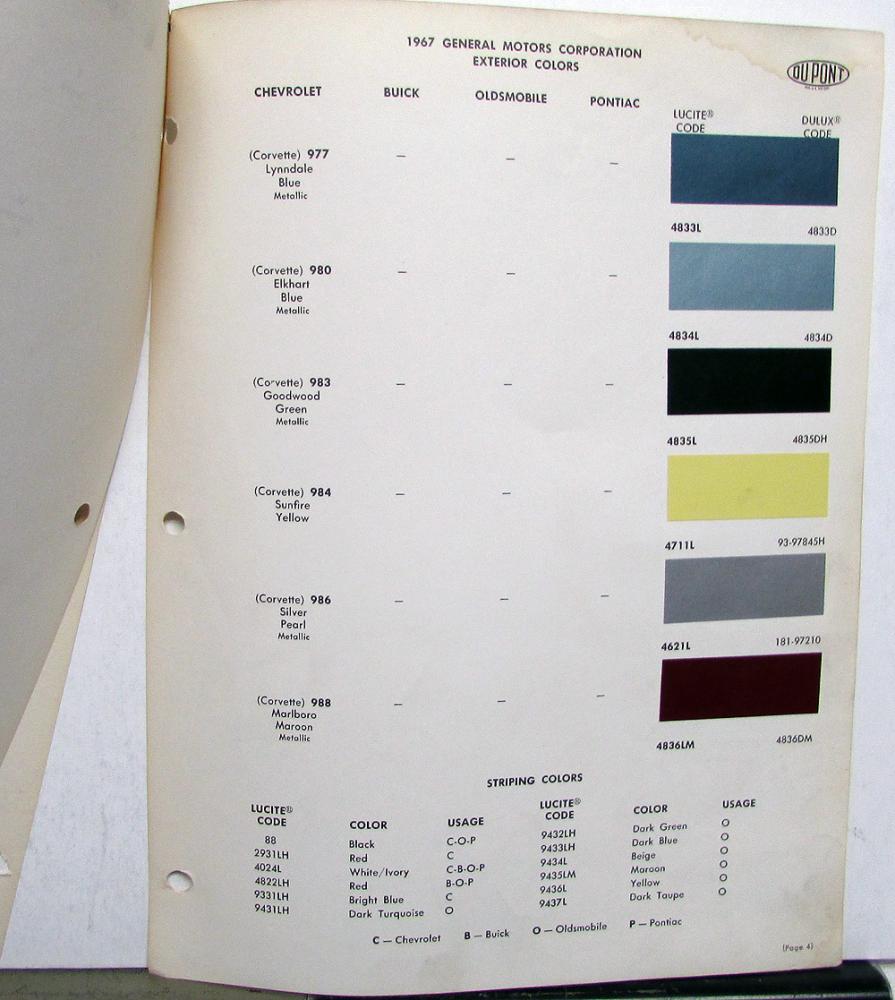 1967 GM Chevrolet Corvette Buick Oldsmobile Pontiac Paint Chips. Good condition with minor wear, soiling and blemishing.