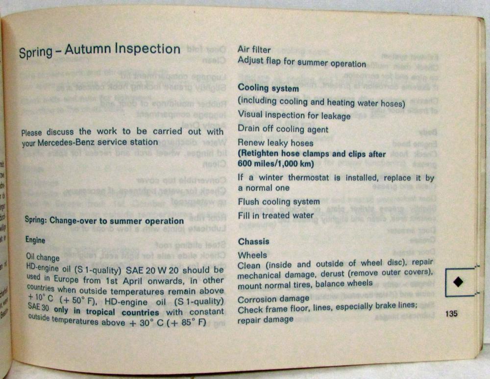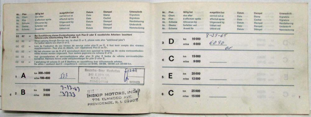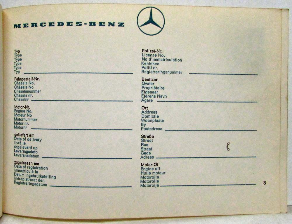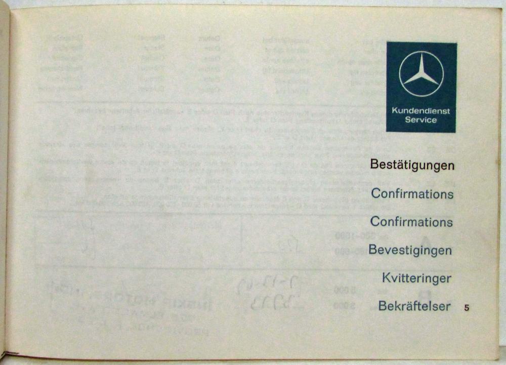 1970 Mercedes Benz Passenger Cars Service Booklet. Multi-Language (German, English, French, Dutch, Danish, Swedish) ORIGINAL