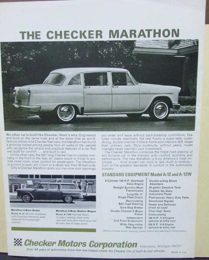 1967 1968 Checker Motor Co. Aerobus Limousine A-12W6M & A-12W8M, A-12E Limousine, Marathon Sedan and Wagon, sales sheet, one-page, two-sided.