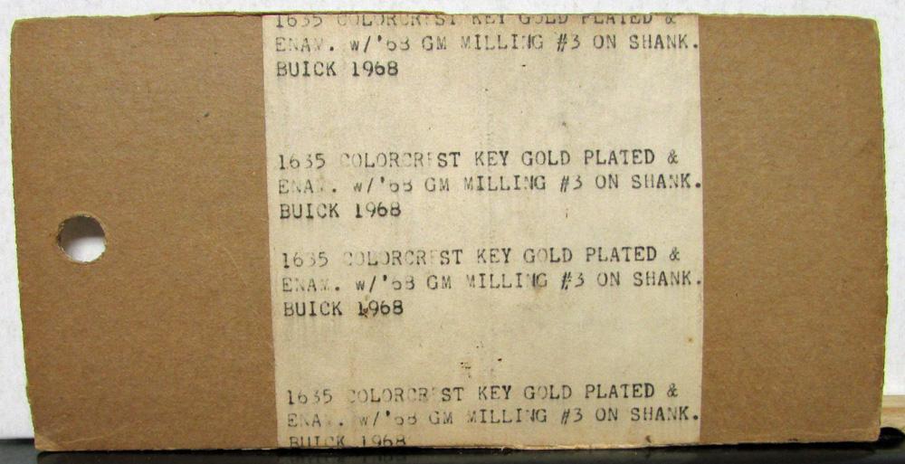Original NOS 1968 Buick Key Blank from Curtis. This Key Blank has the color Buick Crest and includes a Key-Ring. It is still sealed in the original plastic.