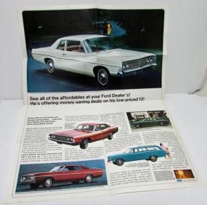 1968 Ford If You Think Car Prices are Up Too High, Come on Down...to Your Ford Dealer's. Promoting pricing on the full line of Ford models and the fact that many items are standard versus extra cost or not available on the competition.