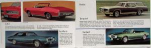 The booklet was designed to introduce the 1968 Buicks, Cadillacs, Chevrolets, Oldsmobiles and Pontiacs to the shareholders. The accompanying folder lists specifications and suggested retail prices of the cars as well as principal optional equipment and accessory items that can be installed.