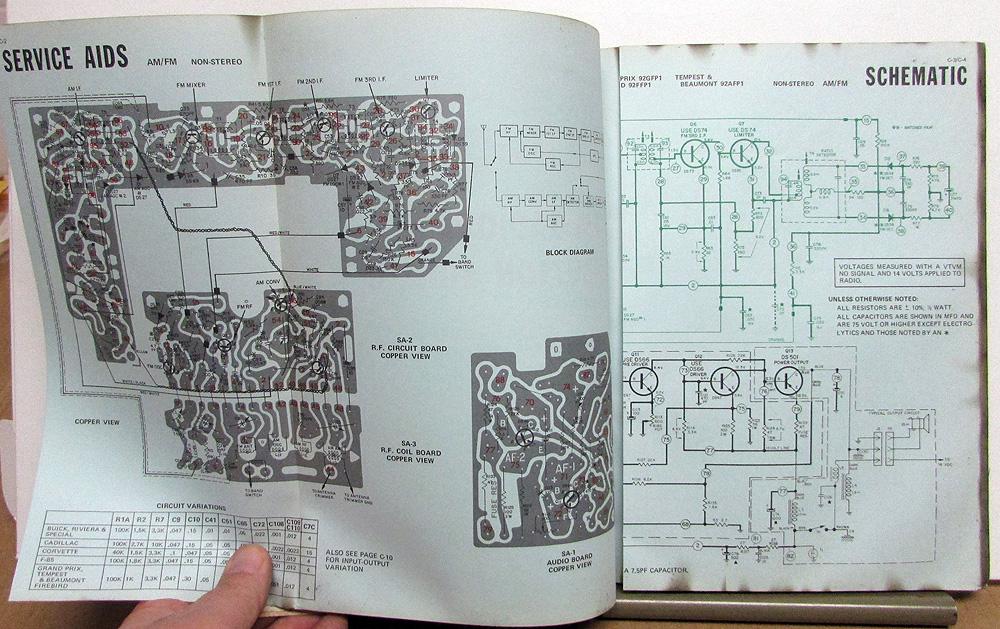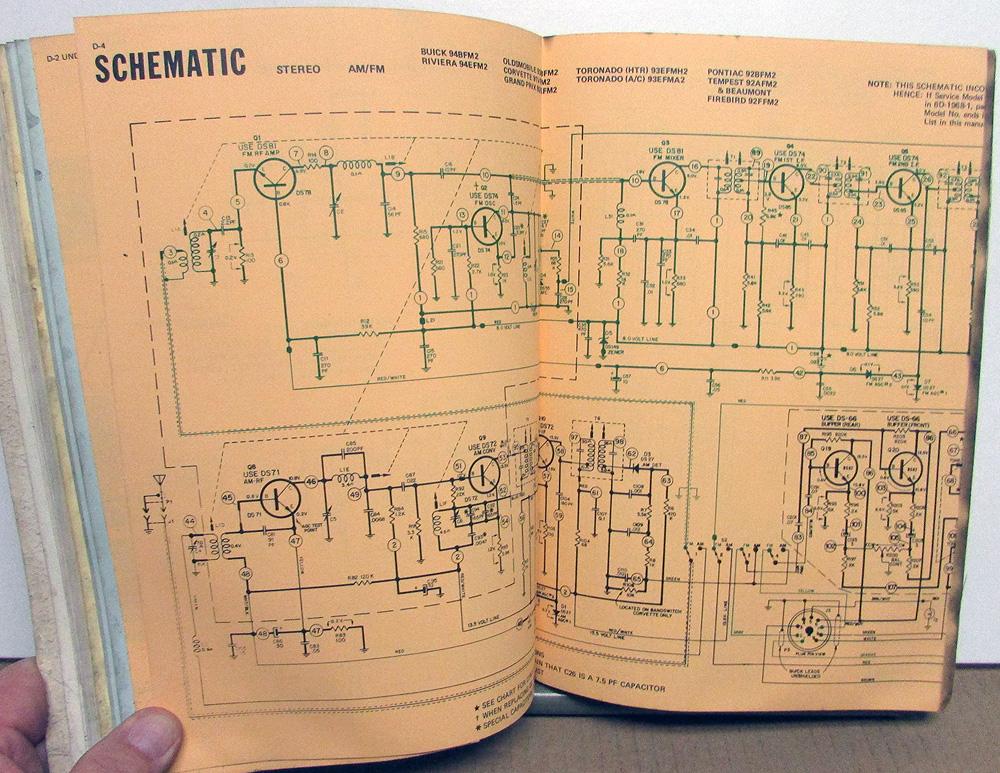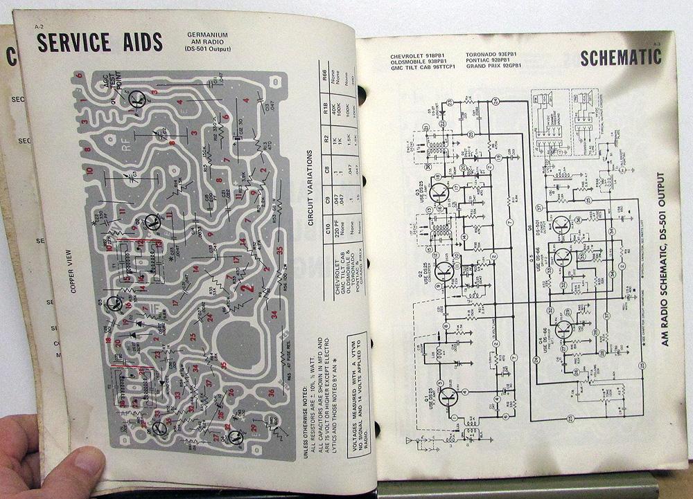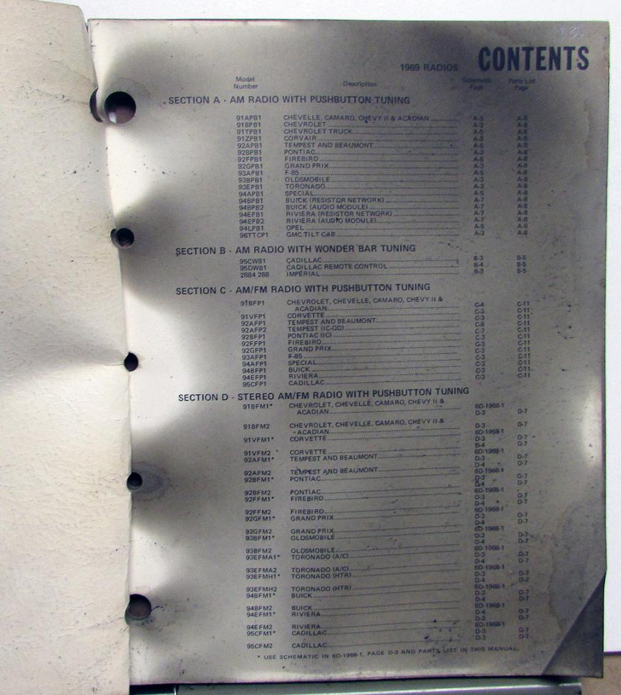 1969 Delco Radio Service Manual. This Shop Manual was used by Dealers and Garages to repair Delco Radios in Buick, Cadillac, Chevrolet, Oldsmobile, Pontiac, GM Of Canada, Chrysler Models. It has information, Parts List, Schematics and Service Instructions to aid in the repair of these Radios. Manual has soiling and blemishing but will serve its purpose [see photos].
