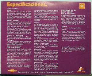 Original, Chevrolet Special and Rally Sport model passenger cars, sales folder printed in Argentina. Printed on two sides of one sheet of paper with one center fold. Printed on cardstock. Good condition.
