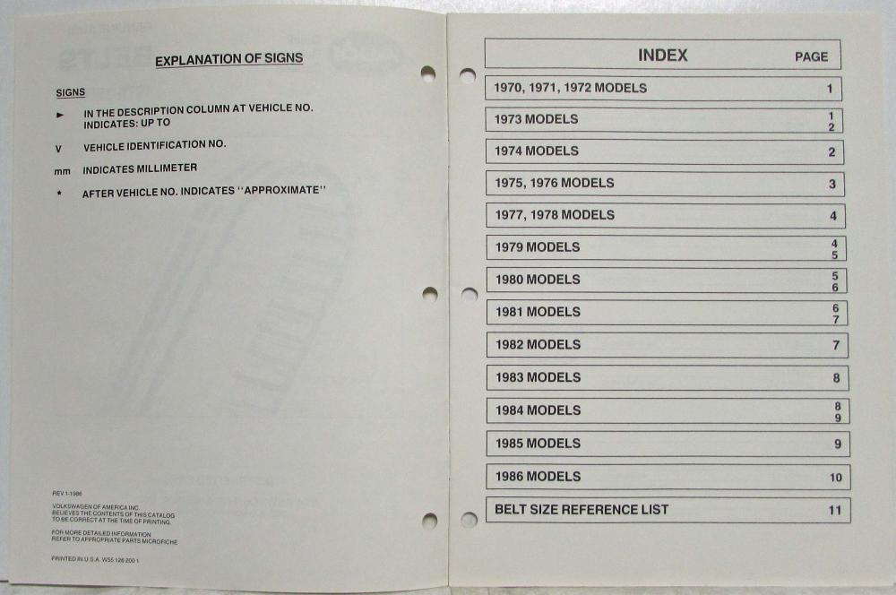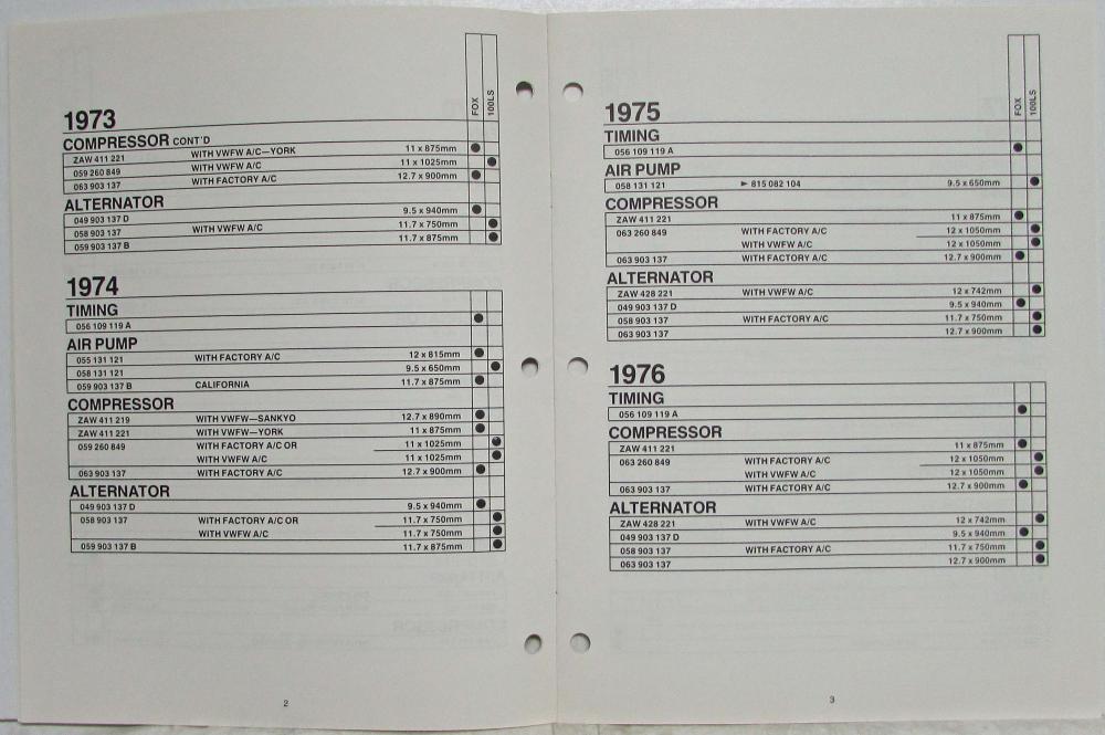 1970-1986 Audi Belts Quick Reference Catalog. Original.