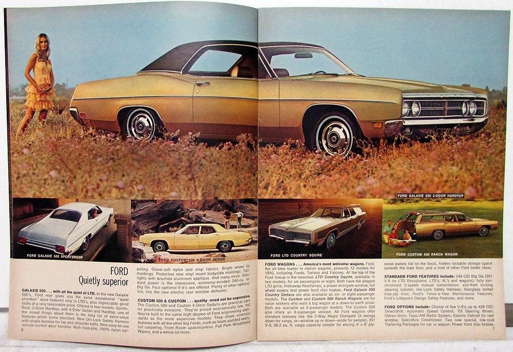 Buyer's Digest of new car facts for 1970. Twelfth year. The original Ford book for car buyers who want all the facts before making a purchasing decision. Option and features for 50 models. Info on LTD, XL, Galaxie 500, Custom 500, Torino, Mustang, Maverick, Falcon, Thunderbird, and Wagons.