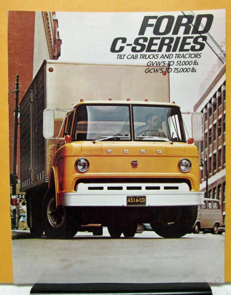1970 Ford C-Series Tilt Cab Trucks and Tractors Sales Brochure and Specifications. Models included in this brochure are the C-500, C-600, C-700, C-750, C-800, C-900, C-6000, C-7000, C-8000, CT-8000, CT-800 and CT-900. This is a color brochure with various pictures of the C series. Also included in the brochure is specifications, features, equipment and dimensions.