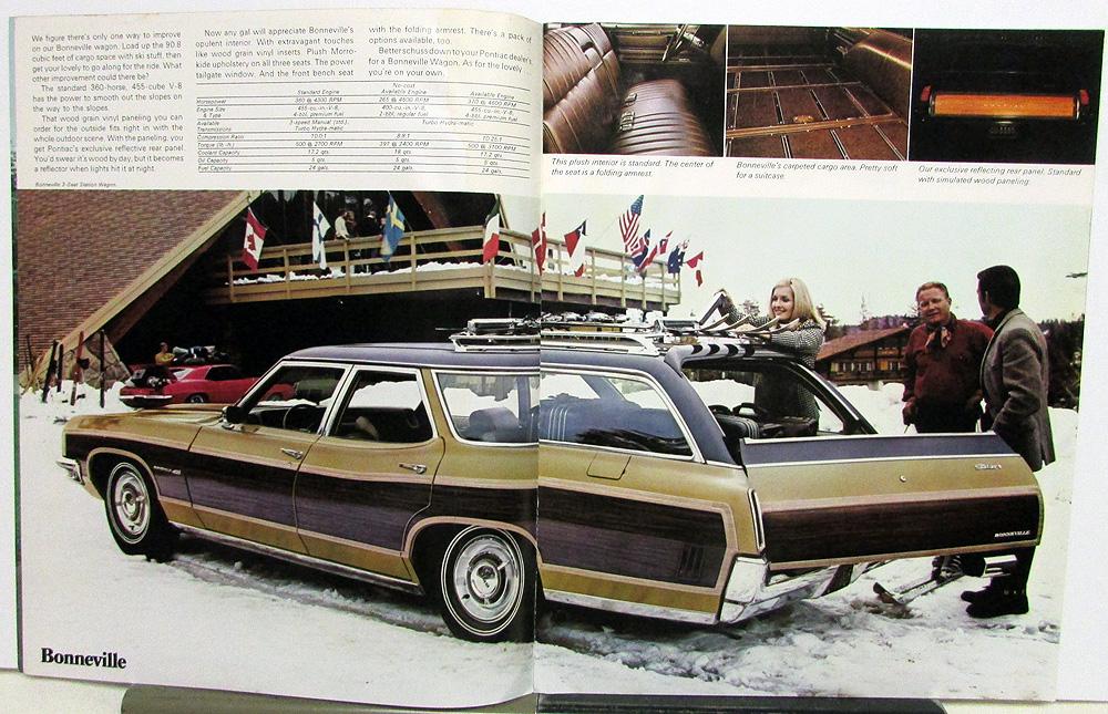 Original 1970 Pontiac Station Wagon Sales Brochure. It measures 9" X 11.25" and has 16 pages. This very well illustrated Brochure details the different Station Wagon Models available from Pontiac in 1970. It includes Options, Accessories, Features and Specifications.Very informative Brochure for Collector or Enthusiast. It is in good condition for its age with minor wear and blemishing. The upper left corner of brochure has been slightly damp causing minor wrinkling [see photos].
