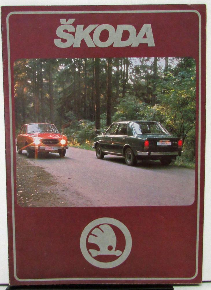 Original, color, sales folder for the Skoda S 105 S, S GLS, S 105L, S 120L, S 120LS, and S 120LS models. Printed in German text. Photos with features/equipment. Folder opens to a colorful poster with the cars on display. Very good condition. Skoda is a Czechoslovakian-built automobile. Specific model year unknown/no reference dated printed on literature.