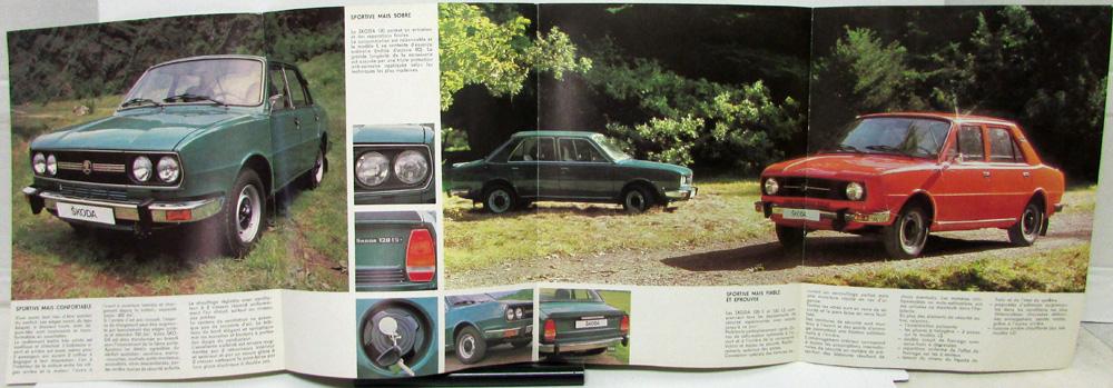 Original, color, sales folder for the Skoda 120L and 120LS models with a green car on a green background cover. Printed for the FRENCH auto market. Photos and technical data/specifications. Good condition. Skoda is a Czechoslovakian-built automobile. Specific model year unknown/no reference dated printed on literature.