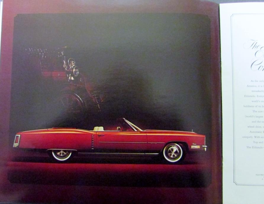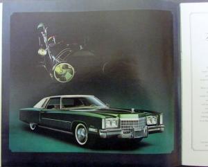 Original, color, sales brochure for the 1972 Cadillac with a card stock cover with white, raised embossed cars around the title "Out of a Tradition of Excellence." Cars photographed with exteriors and interiors are Fleetwood Sixty Special Brougham, Fleetwood Seventy-Five Nine-Passenger Sedan, Fleetwood Eldorado Coupe, Fleetwood Eldorado Convertible, Sedan De Ville, Coupe De Ville, Calais Sedan, Calais Coupe, and some additional photos of standard features and equipment, optional features and equipment, safety features and specifications. Inside covers have a velum paper sheet. This is the smaller version of the other larger brochure. Very good condition. No form no.