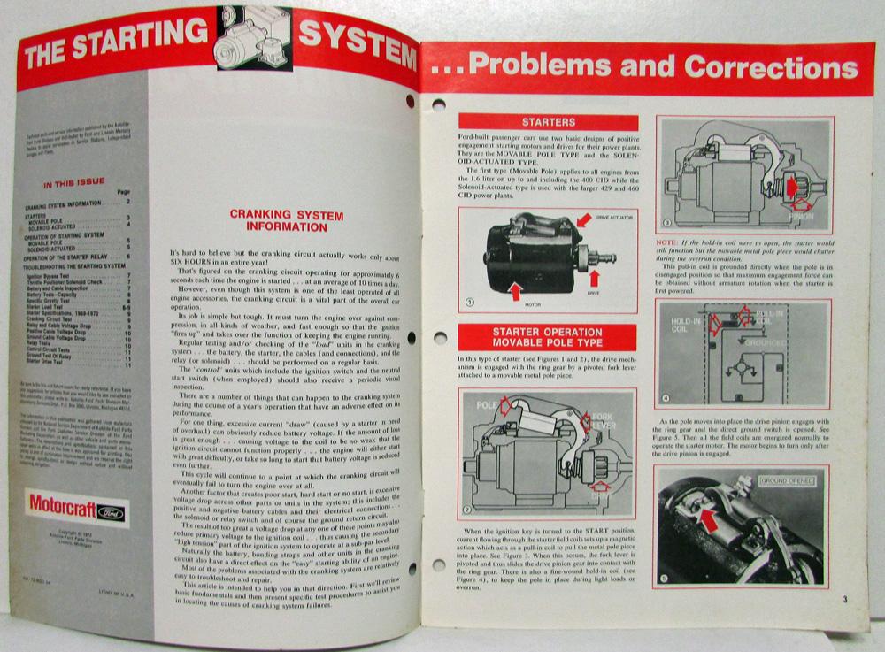 Technical parts and service information published by the MotorCraft-Ford Parts Division and distributed by Ford and Lincoln-Mercury dealers to assist servicemen in Service Stations, Independent Garages and Fleets.
