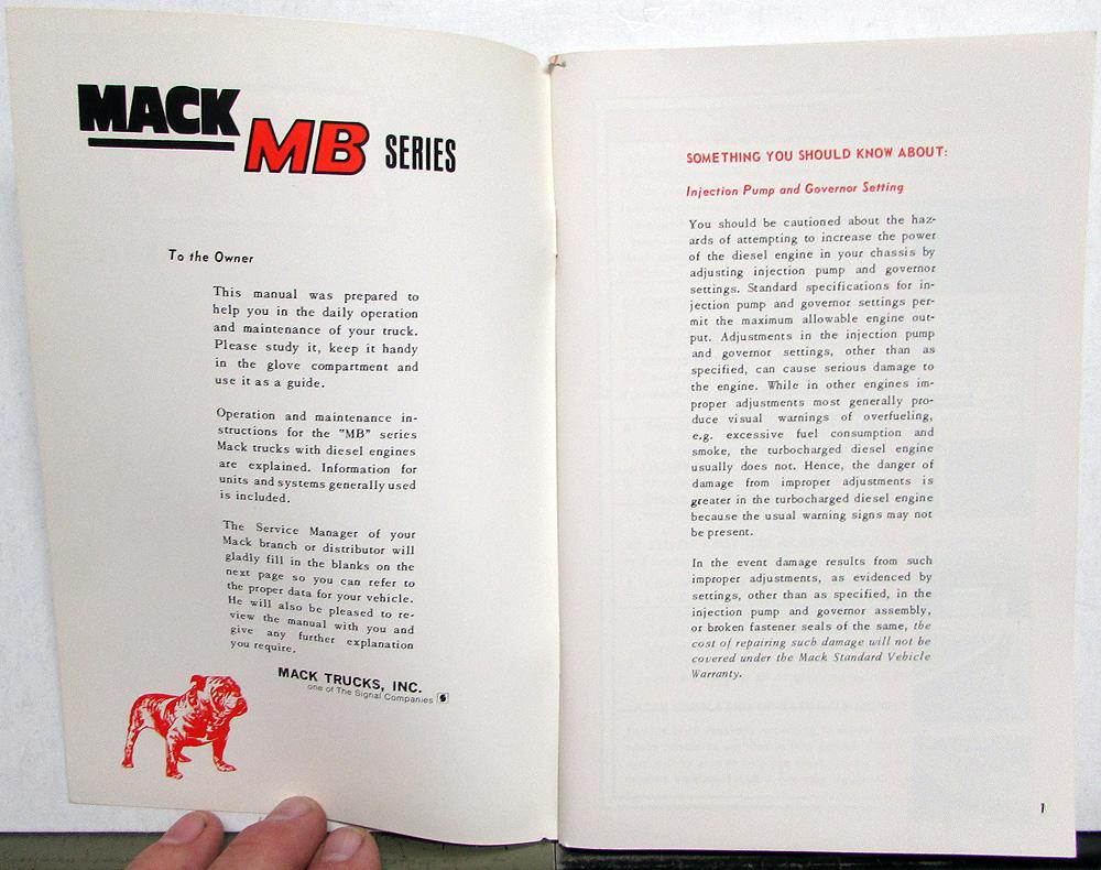 1972 Mack MB Series Trucks Operation Owners Manual. Original. TS448