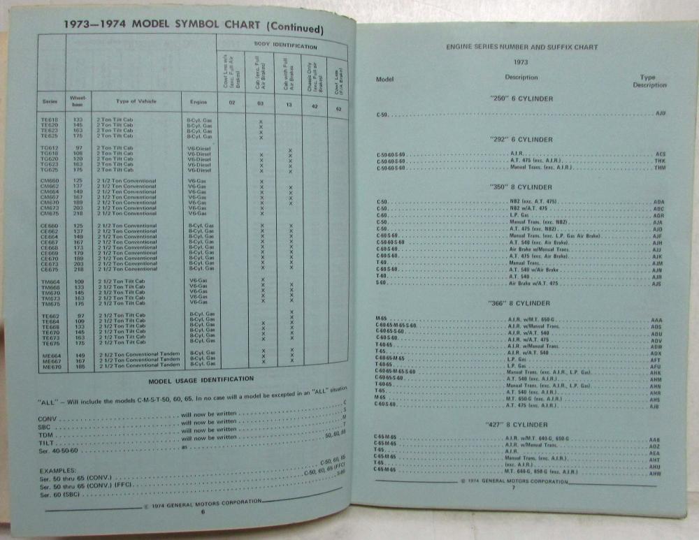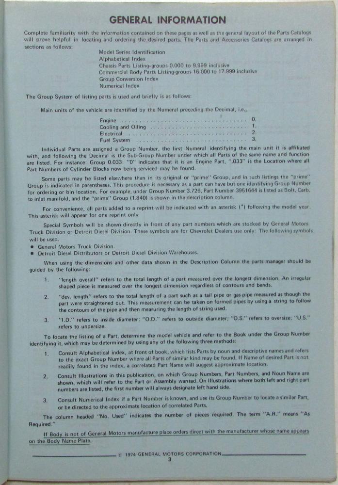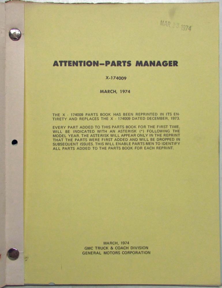 1973-1974 GMC Truck Parts Book for Series 50-60-65 Trucks.