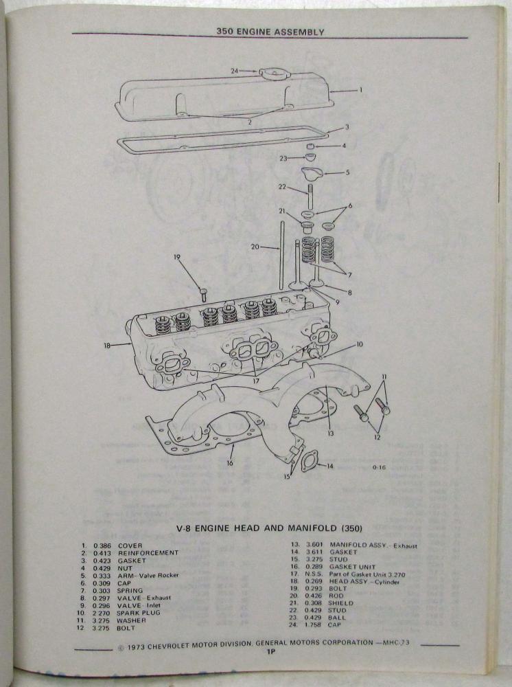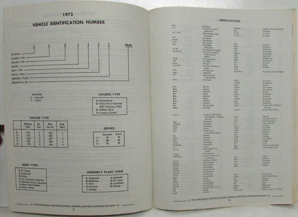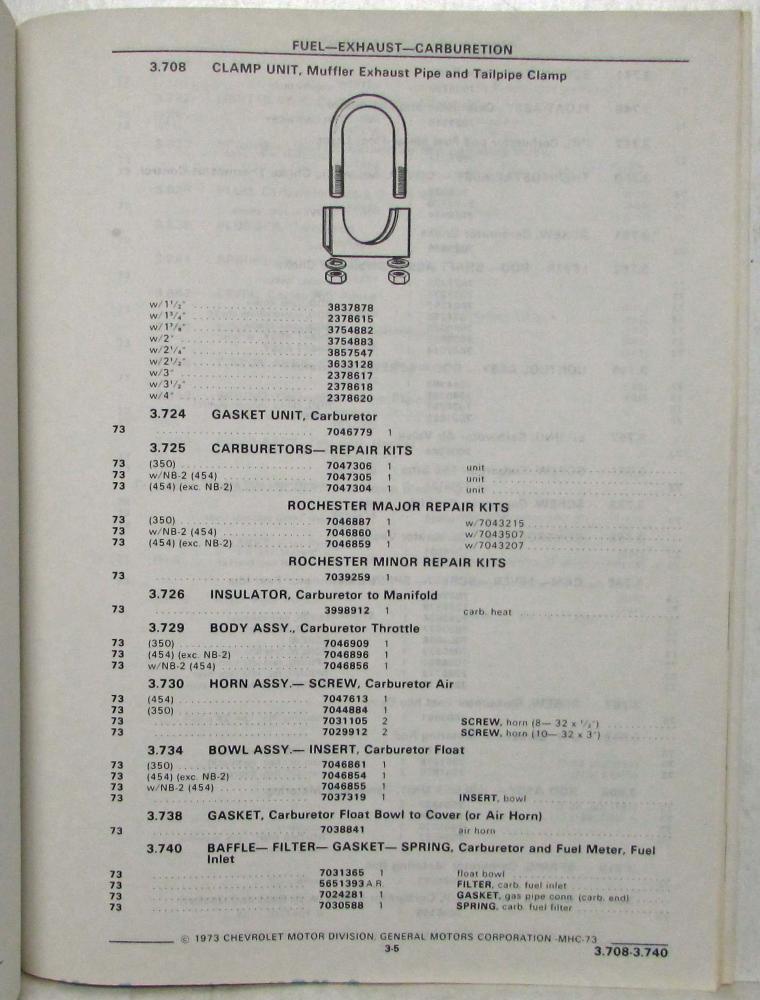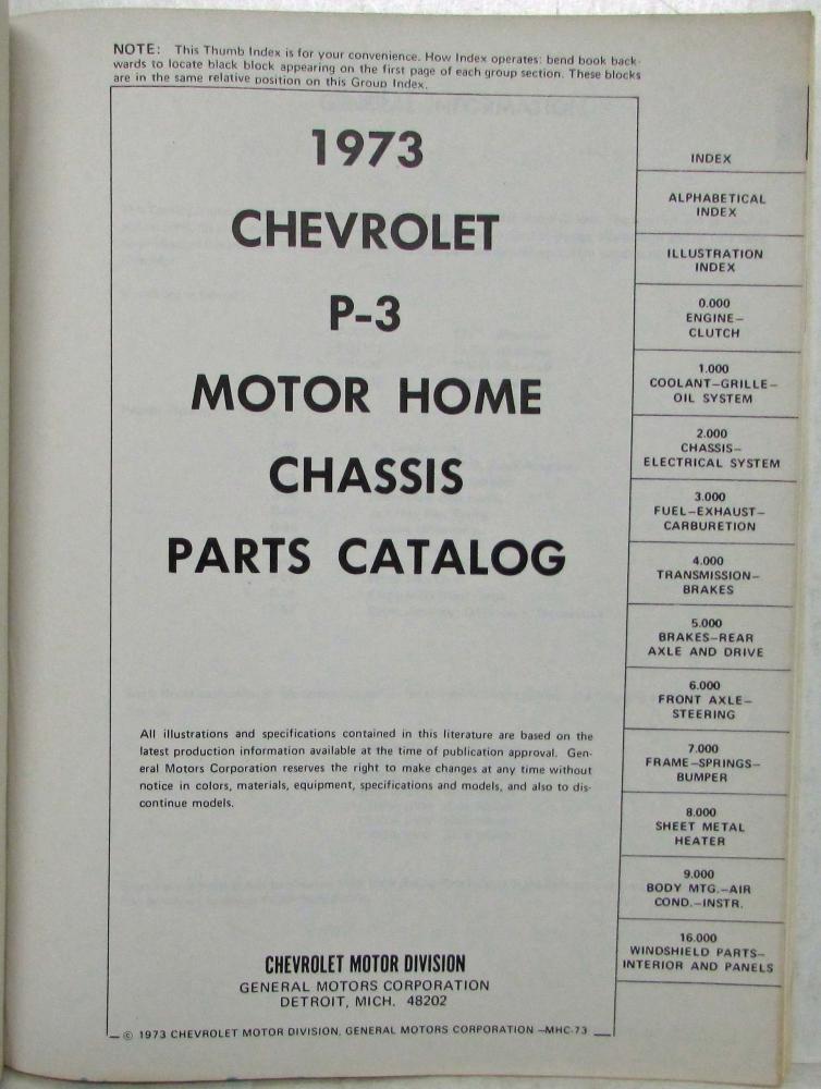 1973 Chevrolet P-3 Motor Home Recreational Vehicle Chassis Parts Book Catalog. Original.