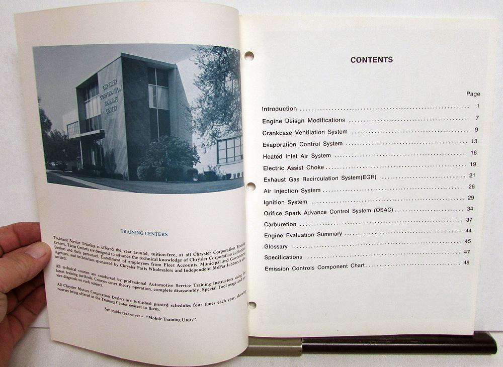 1973 Chrysler Dealer Service Training Booklet. These were used to educate Service Staff on troubleshooting and repair of systems and components on Chrysler Dodge and Plymouth Models. These Booklet covers the Emission Controls on these Models. It is in good condition with minor wear and soiling [see photos]. Very informative and useful tool for the Mopar Owner or Collector that is hard to find.