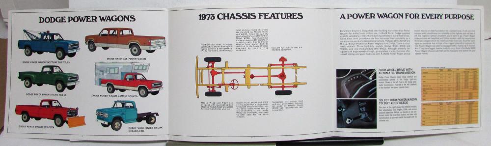 This is an original 1973 Dodge tri-folder for the Four Wheel Drive Power Wagons Series. This tri-folder was made to be an easy resource to see photos, specifications, and much more for the models. This tri-folder is in good condition, however, might have some signs of wear or age, see photos for reference. This is a neat piece and a great addition to any collection!