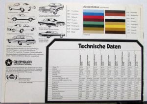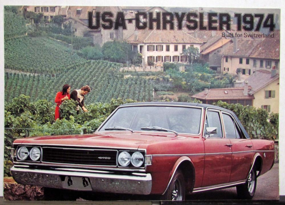 This is an original 1974 sales brochure IN GERMAN TEXT for Chrysler featuring various models. This was made to easily show photos of the model, features, available information, and more. This is in good condition, however, might have some signs of wear or age, see photos for reference. This is a great piece and would make a great addition to any collection!