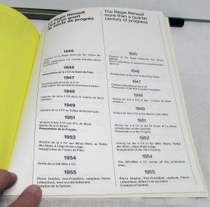 1974 Renault Corporate Summary Booklet. This Company Summary Booklet highlights the history of Renault and its current Business Position and Progress. It has French and English Text. It is in good condition with minor wear [see photos].