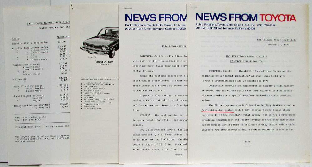 1974 Toyota Press Kit . Original.