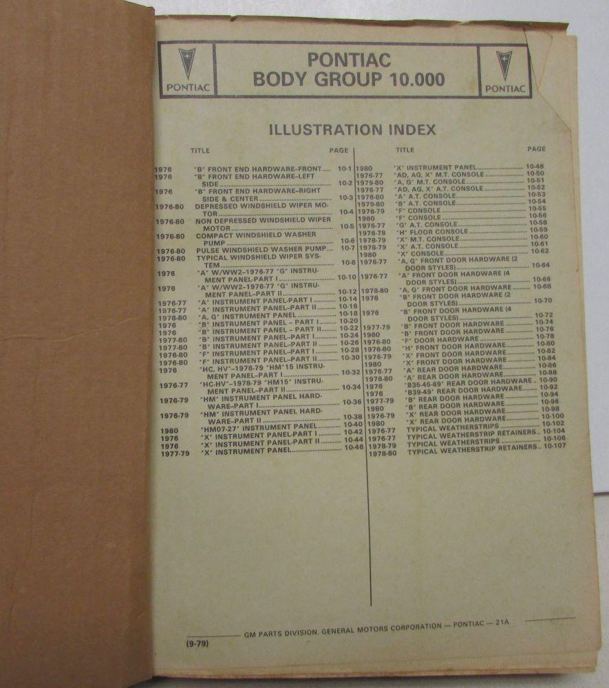 1976-1980 Pontiac Models Chassis & Body Parts Book and Illustration Catalog Set. Original.