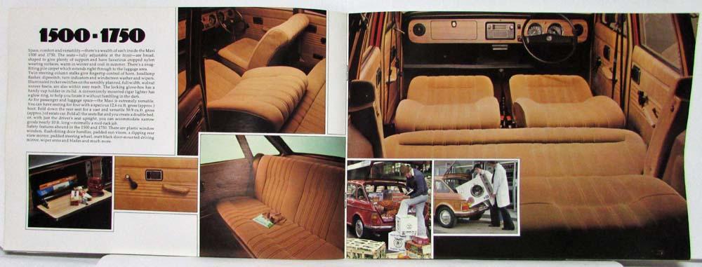 1976 Austin Morris Maxi What Goes on Top Sales Brochure. What goes on top of most cars goes inside a MAXI. Features the 1500, 1750, 1750HL and 1750HLS. Specifications on back.