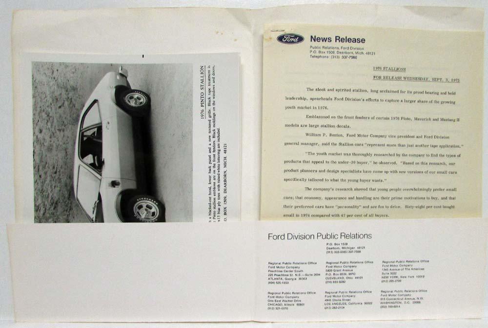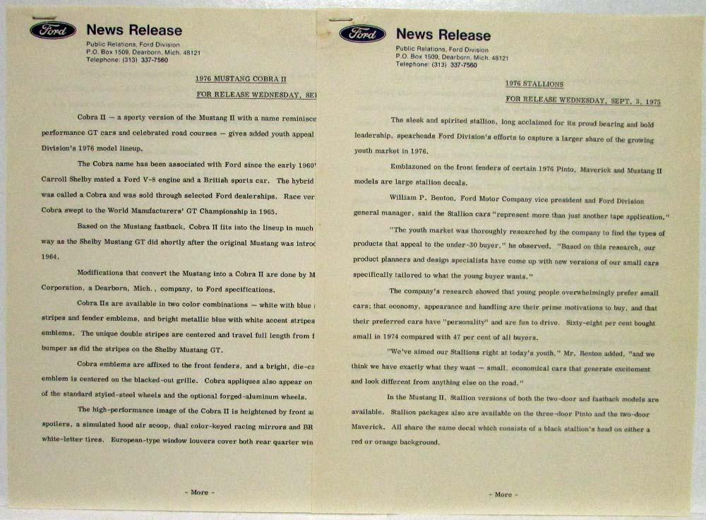 1976 Ford Stallion Package Press Kit. Mustang II. Pinto. Maverick.