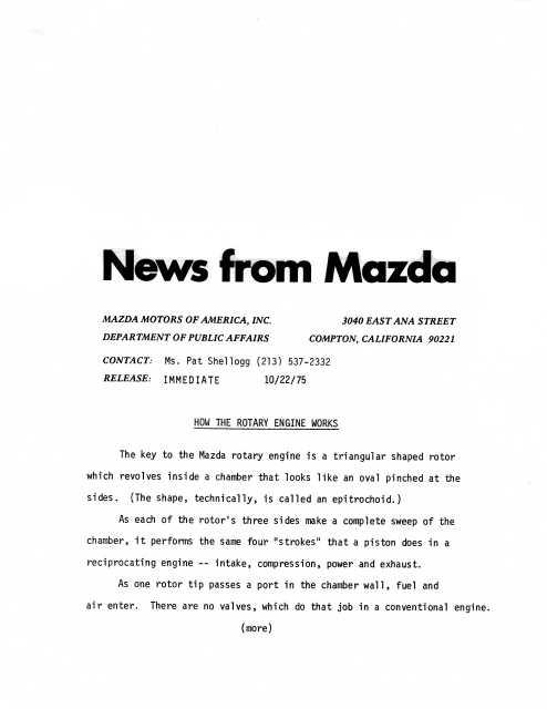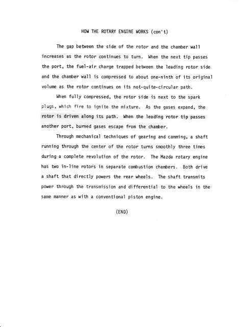 1976 Mazda How the Rotary Engine Works Press Photo and Press Release.