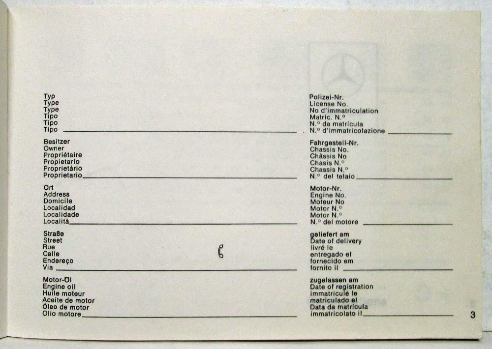 1976 Mercedes Benz Service Booklet - USA Special Edition - Over 100000 Miles. Multi-Language (German, English, French, Spanish, Portuguese, Italian) ORIGINAL
