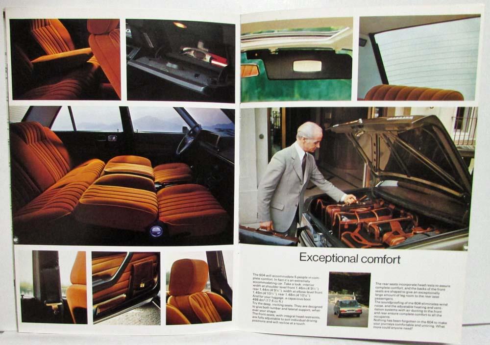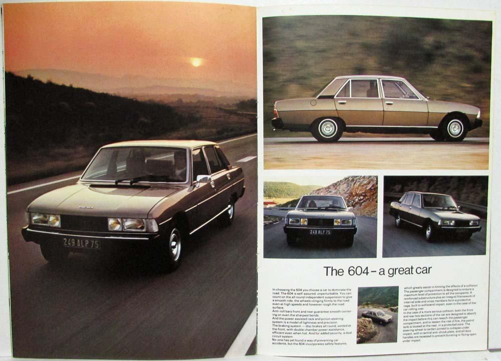 The introduction of the 604 has a double significance. Firstly it is a new Peugeot, and the first of a new generation of large saloon cars. Secondly the 604 is a beautiful car, but a car that has something more, a car that fulfills the needs of today.