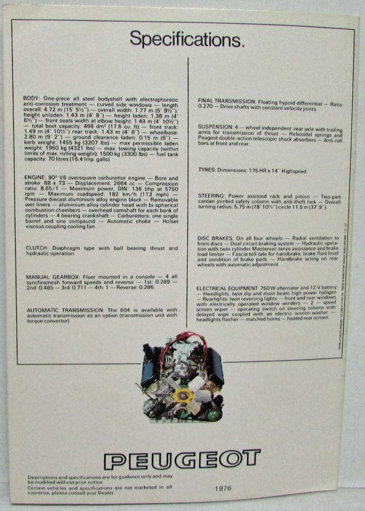 1976 Peugeot 604 SL Sales Brochure
